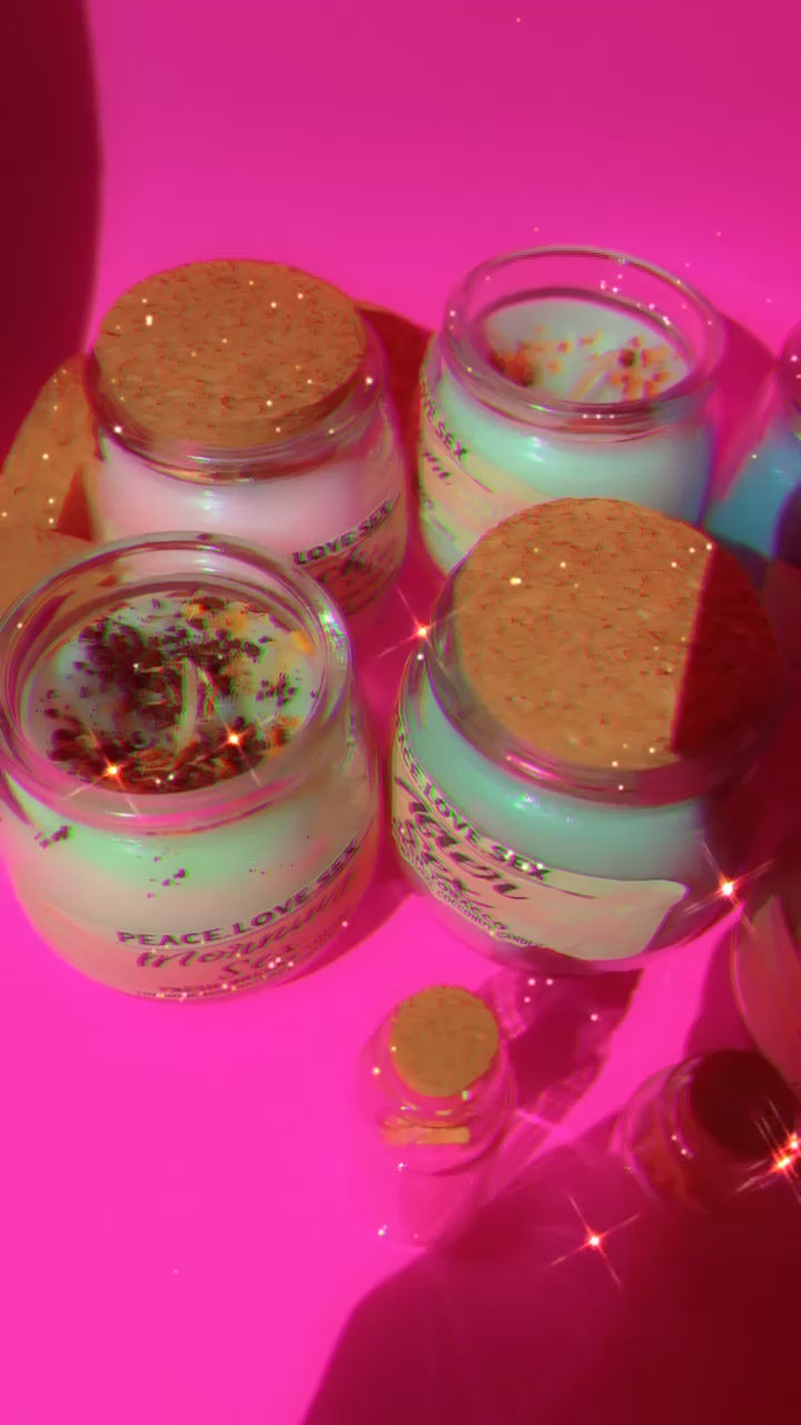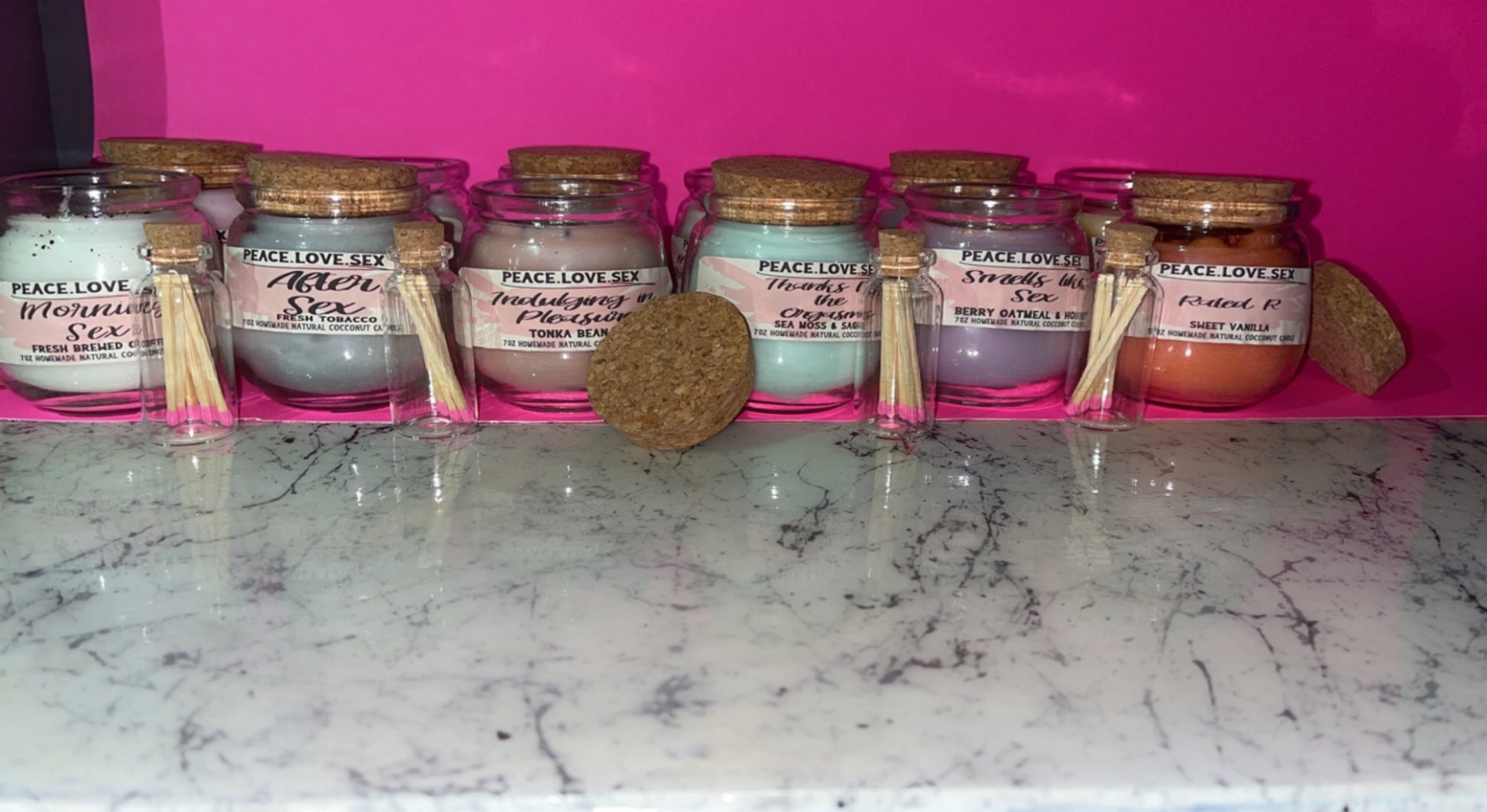 Peace.Love.Sex offers 13 scented candles with some of the most intriguing names. If you're looking to have your nose indulged in romantic sensual smells try some of the flavors; Pine, Teakwood, Sandalwood, Sweet Tabacco, Sage & Sea Moss. Etc.